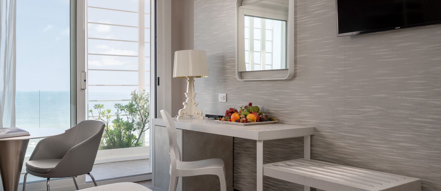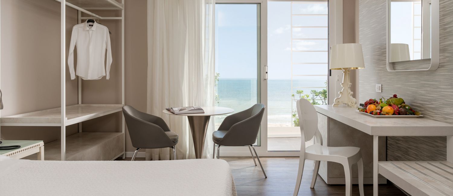 Con balcone fronte mare in vetro cristallizzato dimensione 45 metri quadri unico ambiente con salottino con divano letto