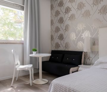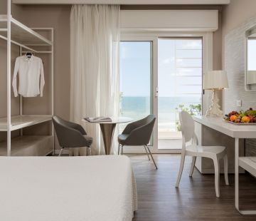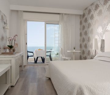 Le 103 camere, fra le quali 14 Junior Suites, di ampia metratura, da poco completamente arredate e dotate di aria condizionata/riscaldamento, frigobar, cassaforte, SKY, televisori LCD, sistema wi-fi, rendono unico ed indimenticabile ogni Vostro risveglio, regalandoVi una suggestiva vista sul mare.