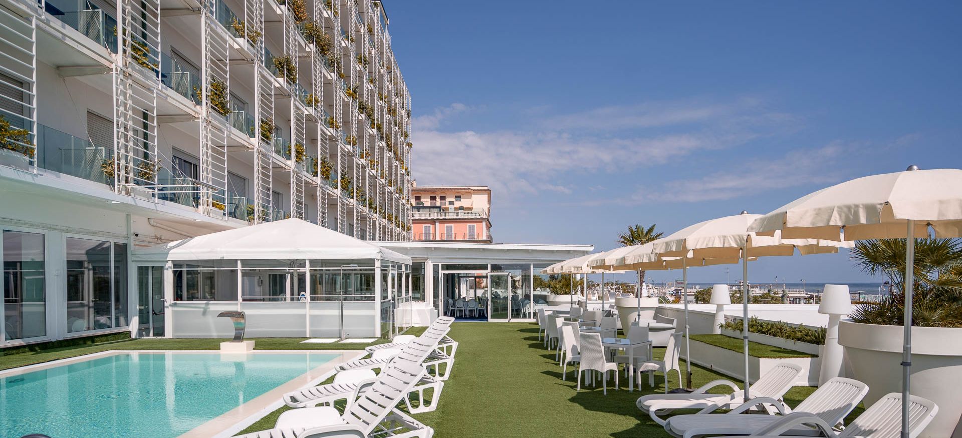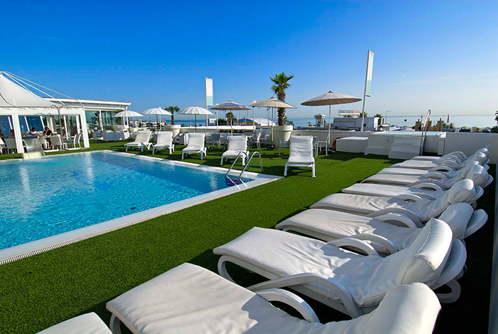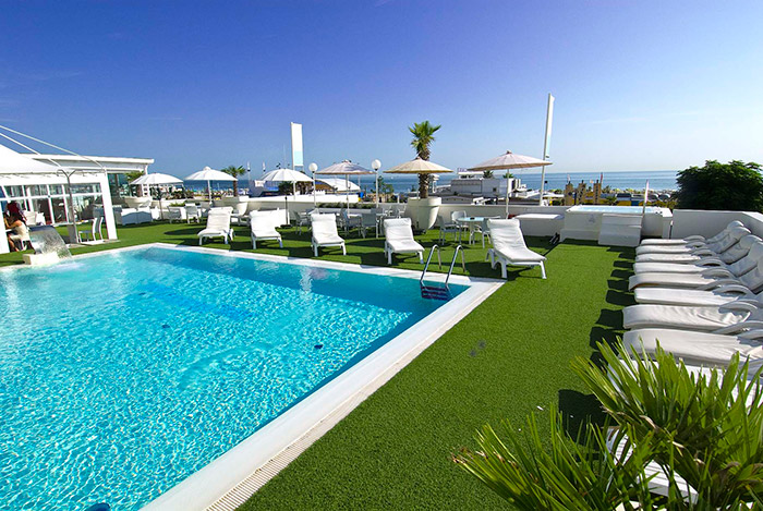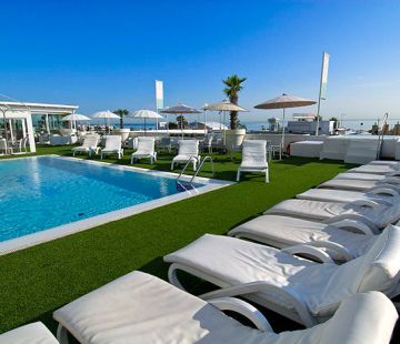 L’Hotel Mediterraneo ha una splendida piscina con una panoramica vista sul mare e sul piazzale di Viale Ceccarini, il centro della vita di Riccione e teatro di tantissimi eventi.